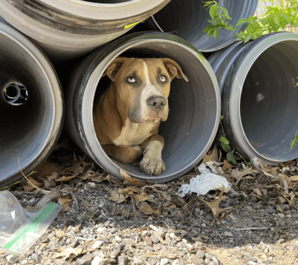 It was a warm spring day when construction workers in St. Louis, Missouri, noticed a white paw sticking out from an unused pipe. As they rounded the corner, they were immediately met with two crystal-blue eyes and an apprehensive growl. Echos of tiny whimpers reverberated deep within the surrounding pipes, but the dog wouldn’t let the workers get close enough to look.