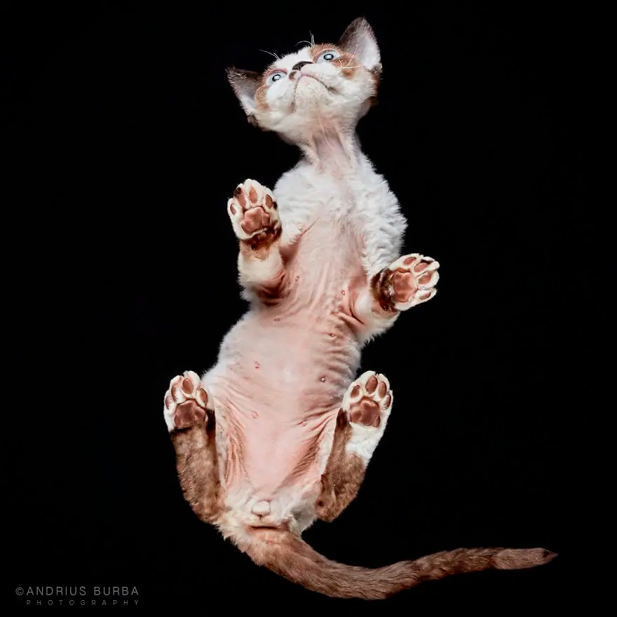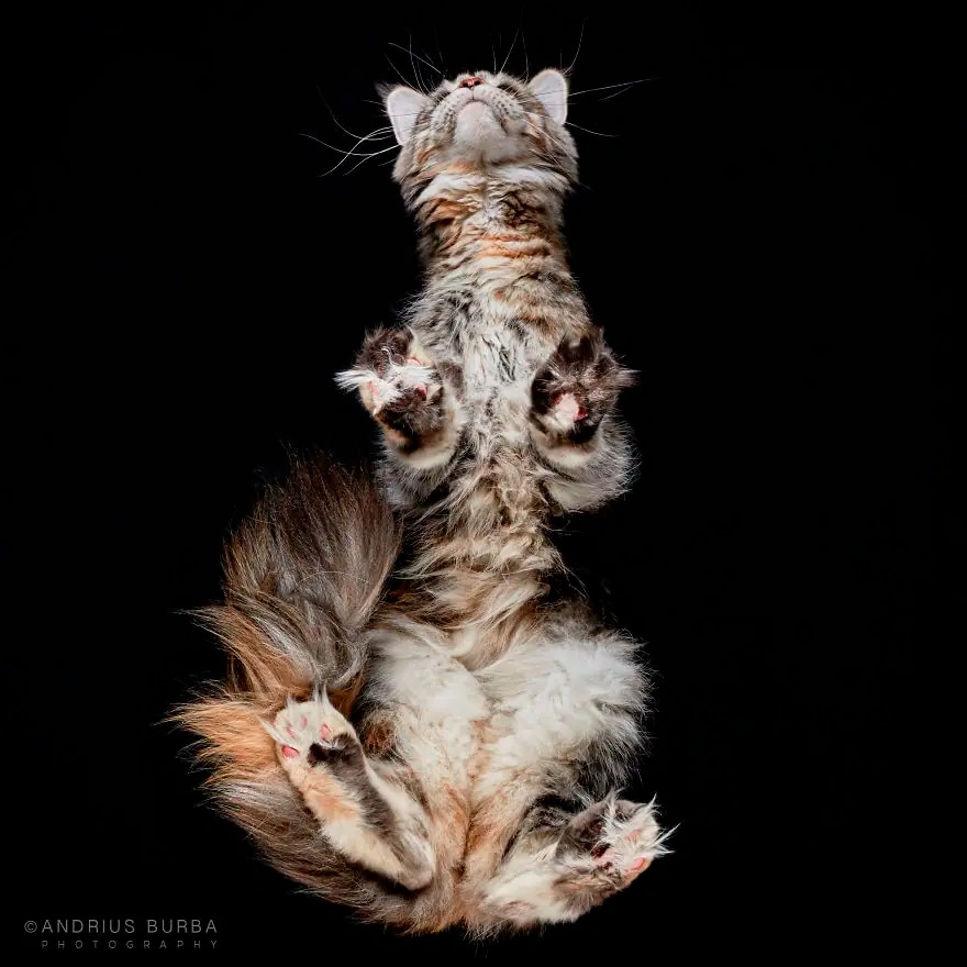 Before, subjects were often shot with a black background, so he decided to use a colorful paper background to brighten up the latest series. All shapes, colors, and sizes varieties are placed on the surface of the glass, under which Burba’s camera is positioned. In the stage footage from the photoshoot, Burba reveals how some of his furry subjects seem relaxed and unfazed by the strange glass surface, while others need a toy distraction to place them in place. High-definition detail of each cat’s perfect legs, a furry belly, and curious expression. What’s next for the Burba to experience? A brave photographer will take a picture of the tiger’s lower body!