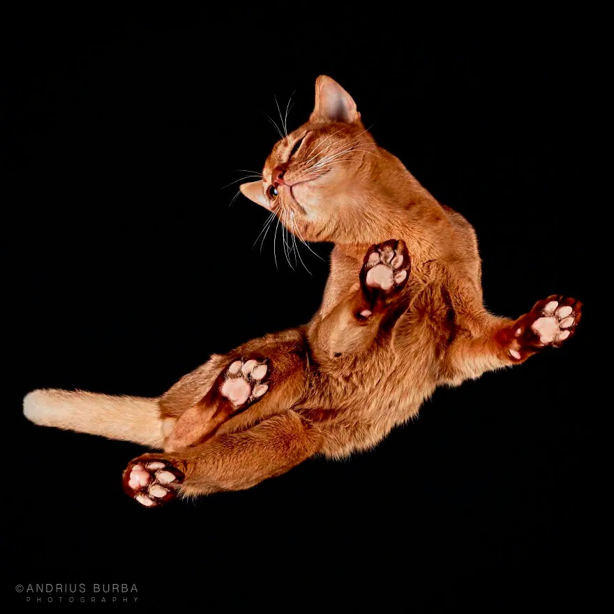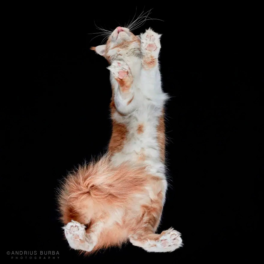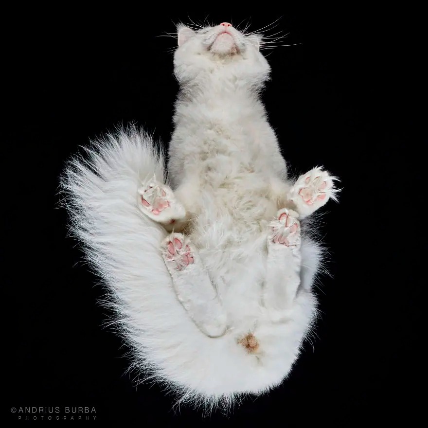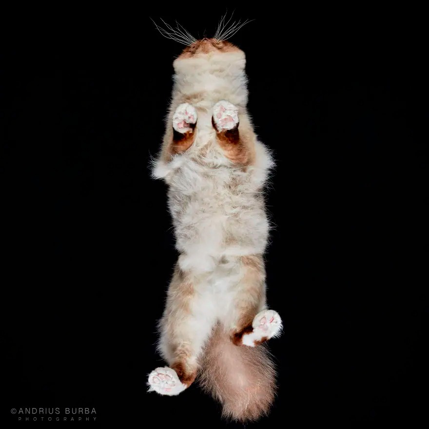 Cats are known for lying down with their adorable bean paws pushed all the way down. If you like cats, you might be wondering what this looks like from below. Lithuanian photographer Andrius Burba fell in love with the idea of photographing a cat from below after seeing pictures on the Internet. So, when the nearby Vilnius village cat show comes, Burba cannot miss the opportunity to take back shots of the various cats. It may be rare, but this picture is super cute.