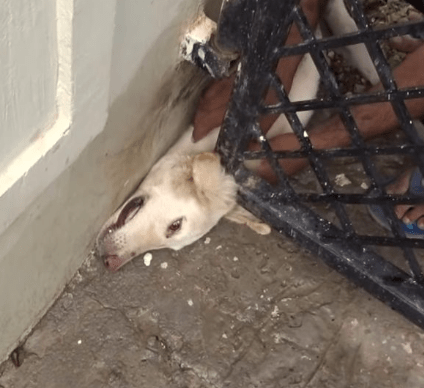 It was a sunny afternoon when I heard a strange sound coming from my neighbor’s yard. As I approached the fence, I saw a small dog stuck in an iron gate, whimpering and howling in pain.
