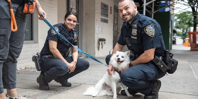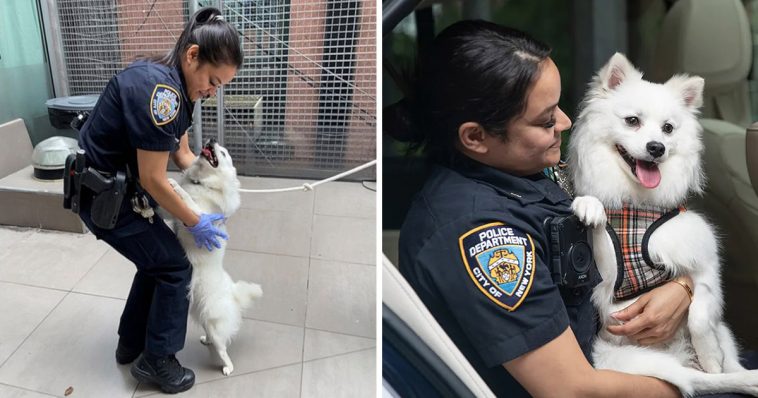 The pup was taken to the vet and then handed over to the ASPCA where the officer would show up to adopt the furbaby for good!