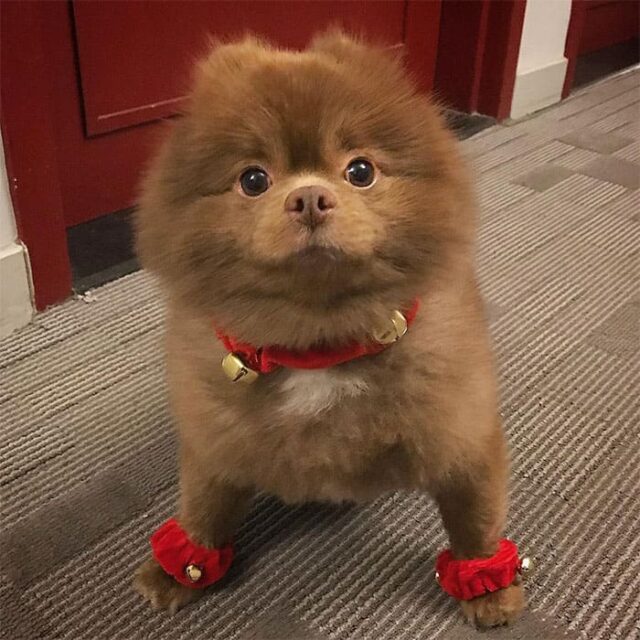 A 5-months-old Pomeranian dog was abandoned by his breeder cause his “too big to be sold”. The poor baby was posted on Petfinder.com where Kathy Grayson, a museum curator found him. Kathy fell in love with his eyes and said: “I flew to Tulsa and drove to the town to pick him up, it was a wonderful adventure. The shelter was sad to see him go, he definitely had gotten some special extra love there.”