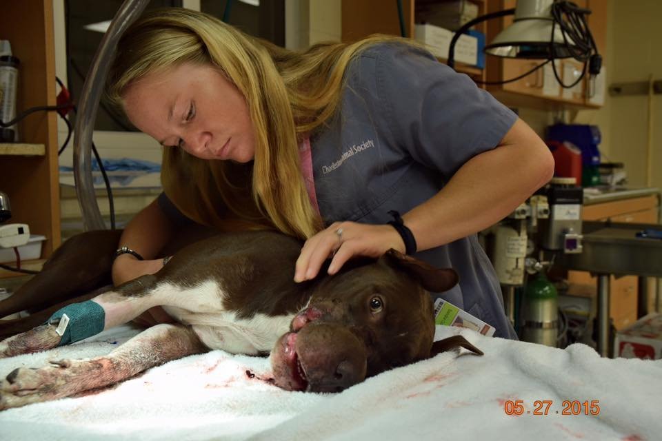 The kind people immediately took Caitlyn to the Charleston City Veterinary Center. The poor animal was diagnosed with a blood vessel blockage and likely had to have part of its tongue amputated. Doctors said Caitlyn’s muzzle was probably bandaged about 3-4 days ago. Fortunately, due to the dedicated care of doctors, this dog is showing signs of good recovery. They will treat Caitlyn with hyperbaric oxygen therapy and lasers to minimize damage to the mouth area.