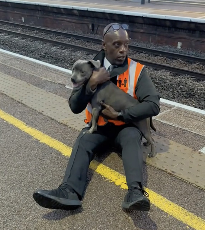 He told the outlet that he was in the booking hall when someone told him the Stattfordshire bull terrier was on the tracks.