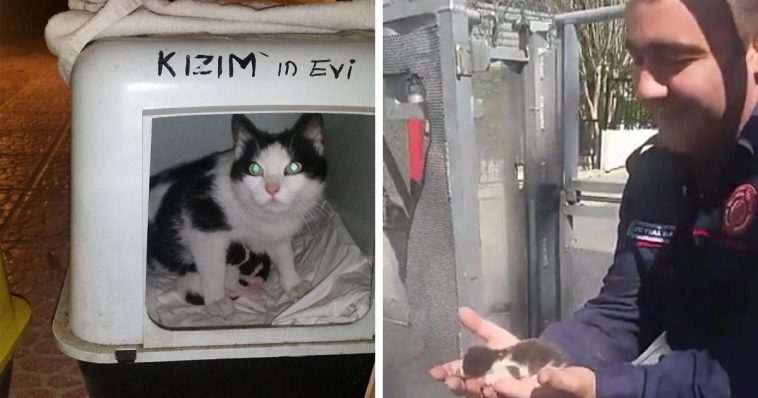 This incident occurred in Istanbul, Turkey. In a bird’s nest, a mother cat gave birth to four kittens. One of the kittens, unfortunately, fell off the tree. When local people saw the cat and his siblings, they called the fire department for help.
