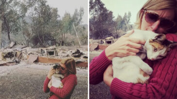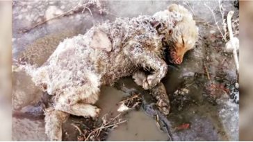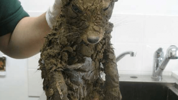 The kind woman found the poor dog covered in dirt and mud in the hole and then she couldn’t believe her eyes when she cleaned it up