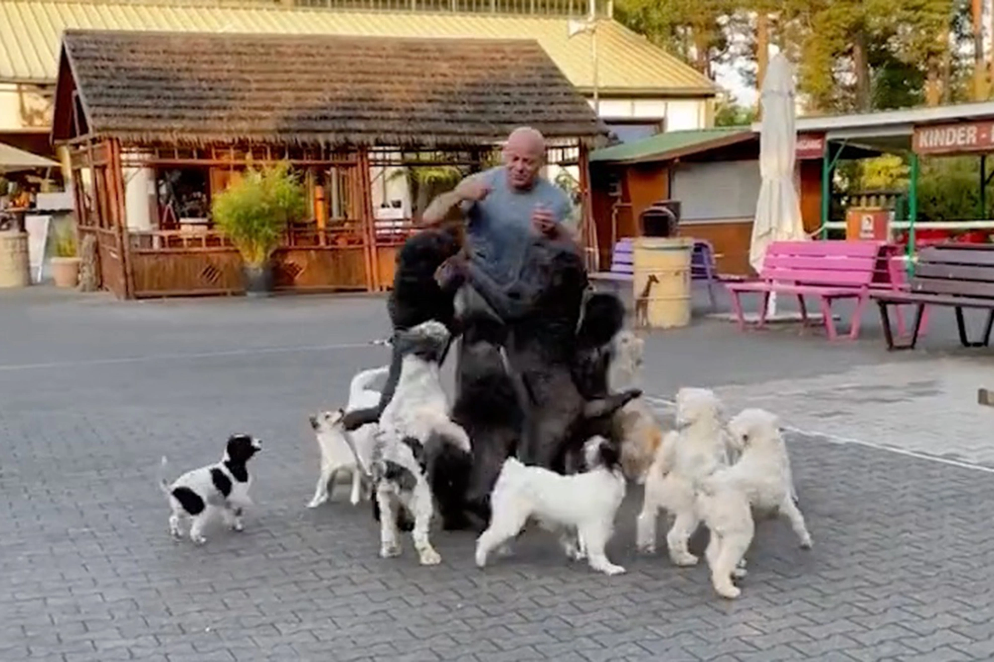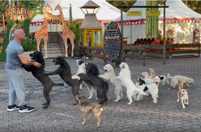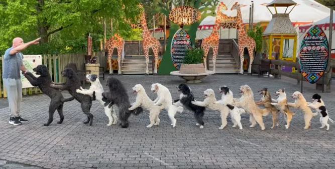 It’s something unusual to see, but in Germany recently, a 14-dog conga line made its way around town