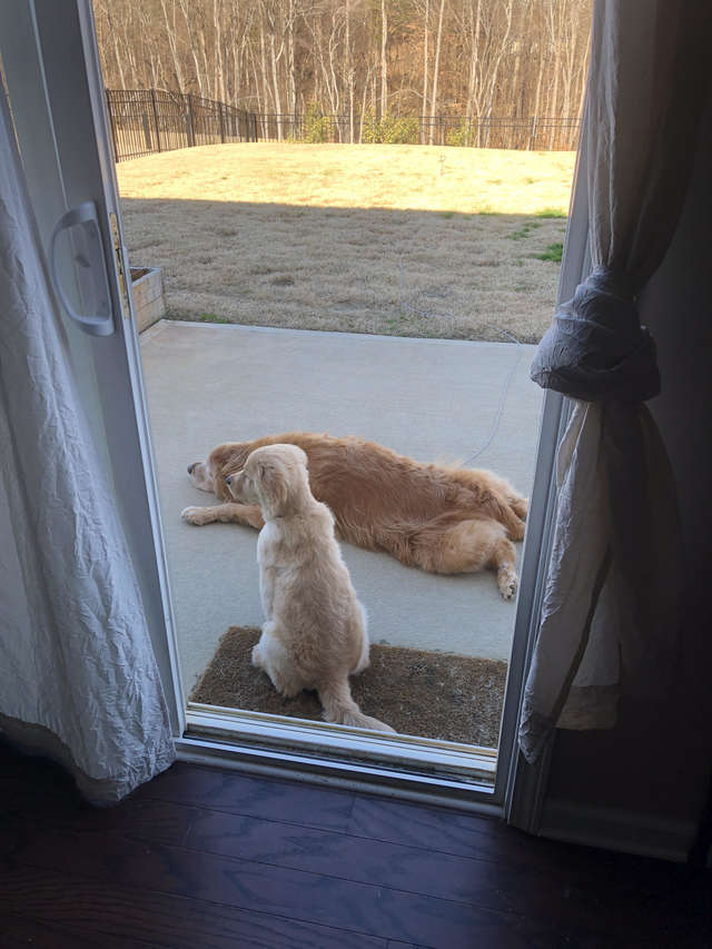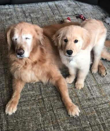 His owners, Chelsea Stipe and her husband felt that Charlie would find benefit from having a canine companion to keep him company so they brought home an adorable puppy named Maverick for Charlie.