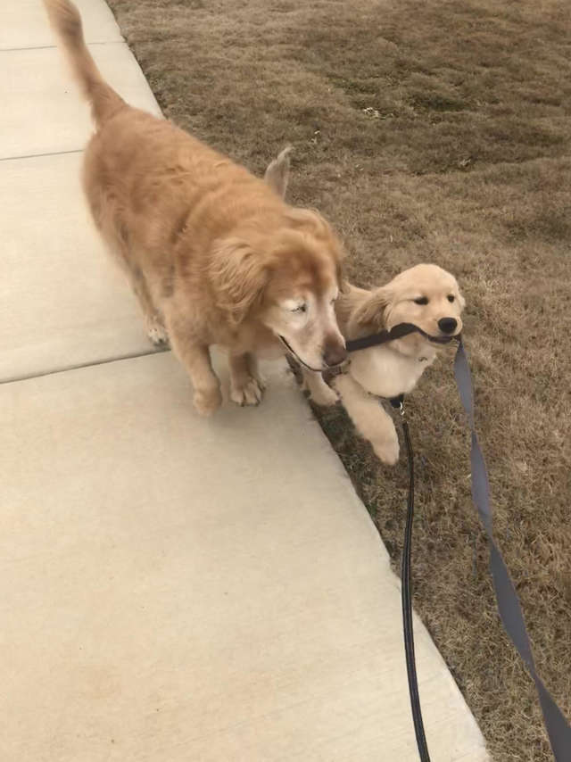 Even though the puppy was only a few months old, he would be on the lookout when Charlie wanted to move or walk.