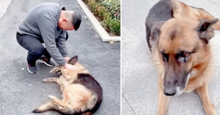 The heartwarming video originated on a Chinese social media site, posted by the Xichuan Police Department. According to Daily Star, Wangwang, an 8-year-old German shepherd, worked with the department as a sniffer dog before retiring in June 2019.
