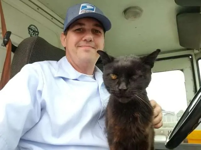 Despite her rough appearance, the ancient cat with one milky eye and a crooked half-tail had a reputation among other postal carriers as the ultimate sweetie.
