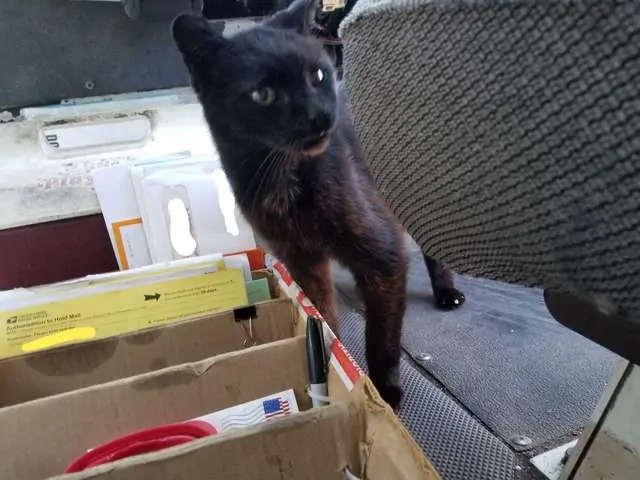 McEuen works five different routes as a replacement carrier, so he only sees Bijou once a week. When she hears his truck approaching her house, though, the small cat makes it a point to go out and visit her pal.