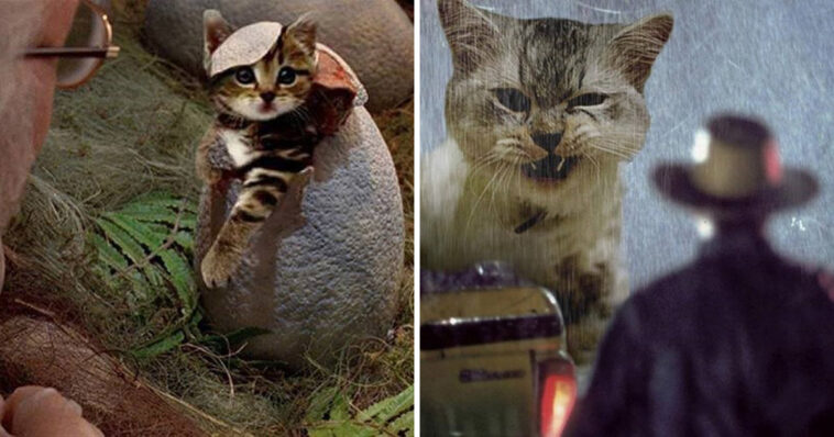 Jurassic Park has a pretty cool yet scary plot with a main character was giant prehistoric reptiles that mankind genetically recreated but do you know what is even more scary than that? A domestic cat! Someone replaced those original creatures with cats and caught a bunch of cat lovers to this Purrassic Park the parody because it looks really hilarious and we just can’t insist ourselves of letting go of them. Guess if some director ever made Purrassic Park, it would be an all-time blockbuster!
