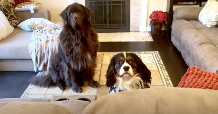 Samson the Newfoundland and his bud Rambo the Cavalier King Charles love to play hide and seek — but they’re not very good at it!