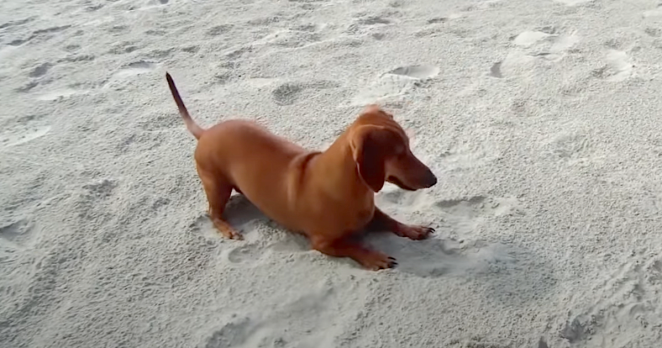 Madeline the Dachshund is loving her time at the beach with all these different sights and smells.