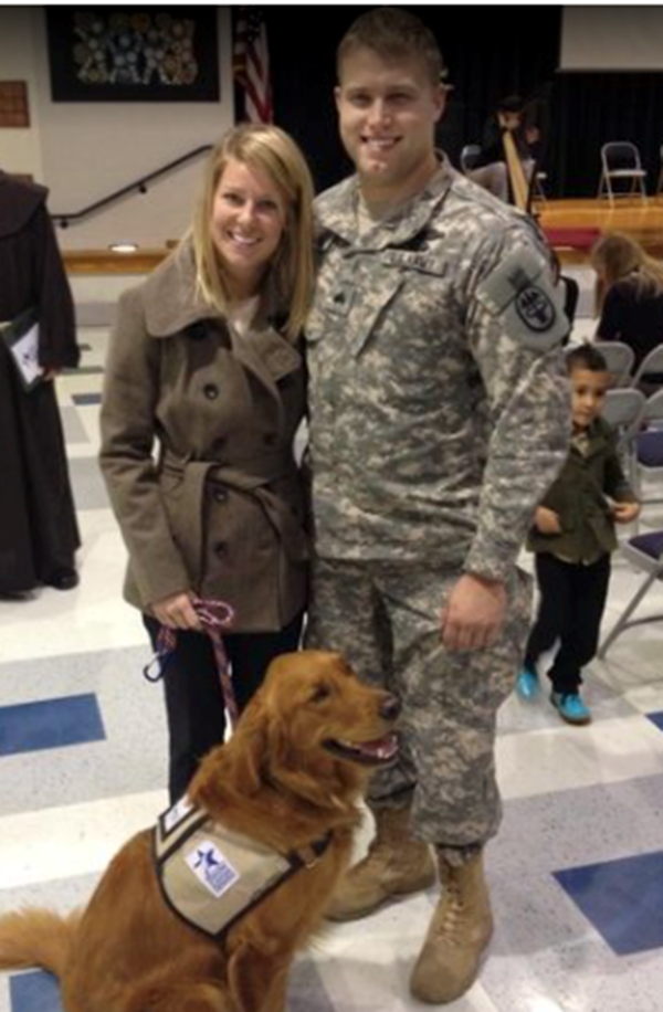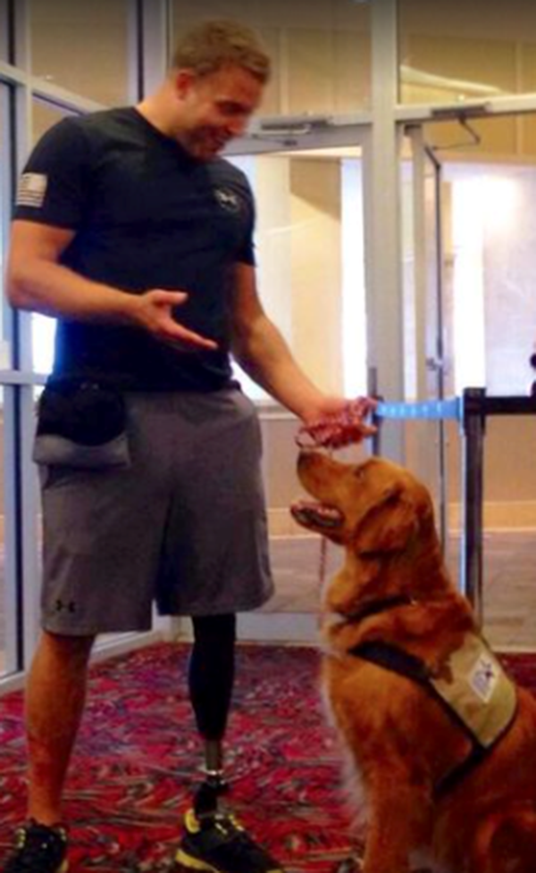 Gabe, a golden retriever, was assigned to Justin. Justin needed help readjusting after losing his leg, and Gabe was a huge help.