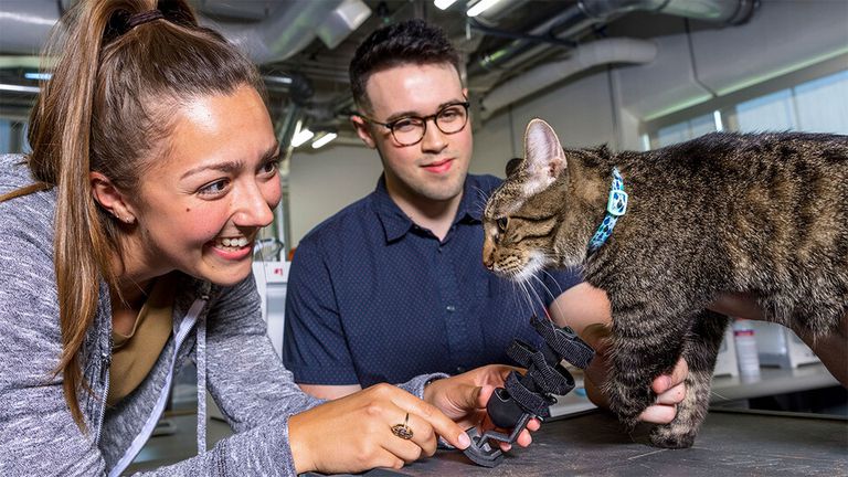 Olive, a three-legged cat, was brought from a shelter in Nebraska one day to participate in an engineering study that would change her life forever.