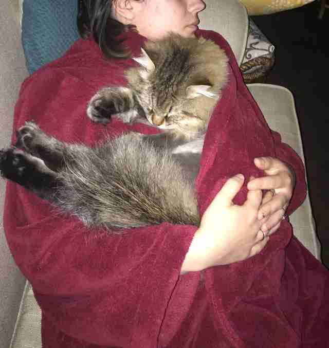 Kitchen came home from work to Max meowing loudly at her, as if he wanted her attention. He continued to randomly meow at her for several days, and Kitchen decided to try giving him some love in return, which weirdly, he happily accepted. It was strange, but Kitchen didn’t think too much of it, until Max started cuddling with her while she slept.
