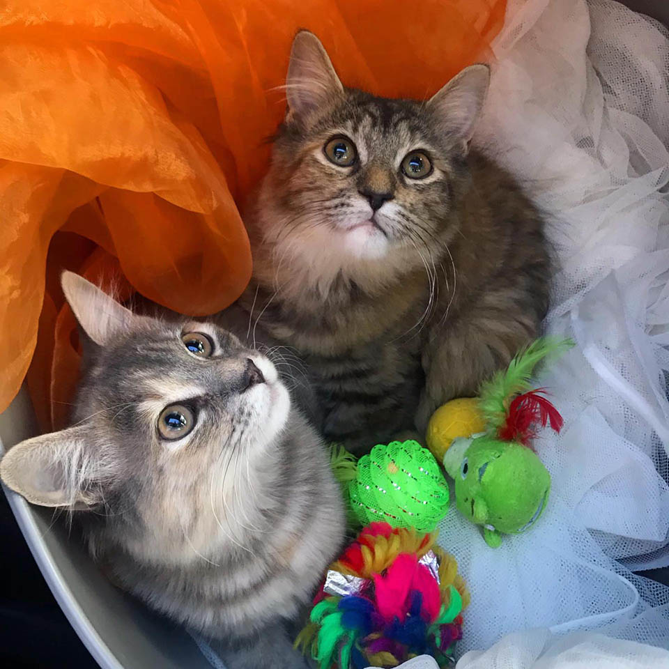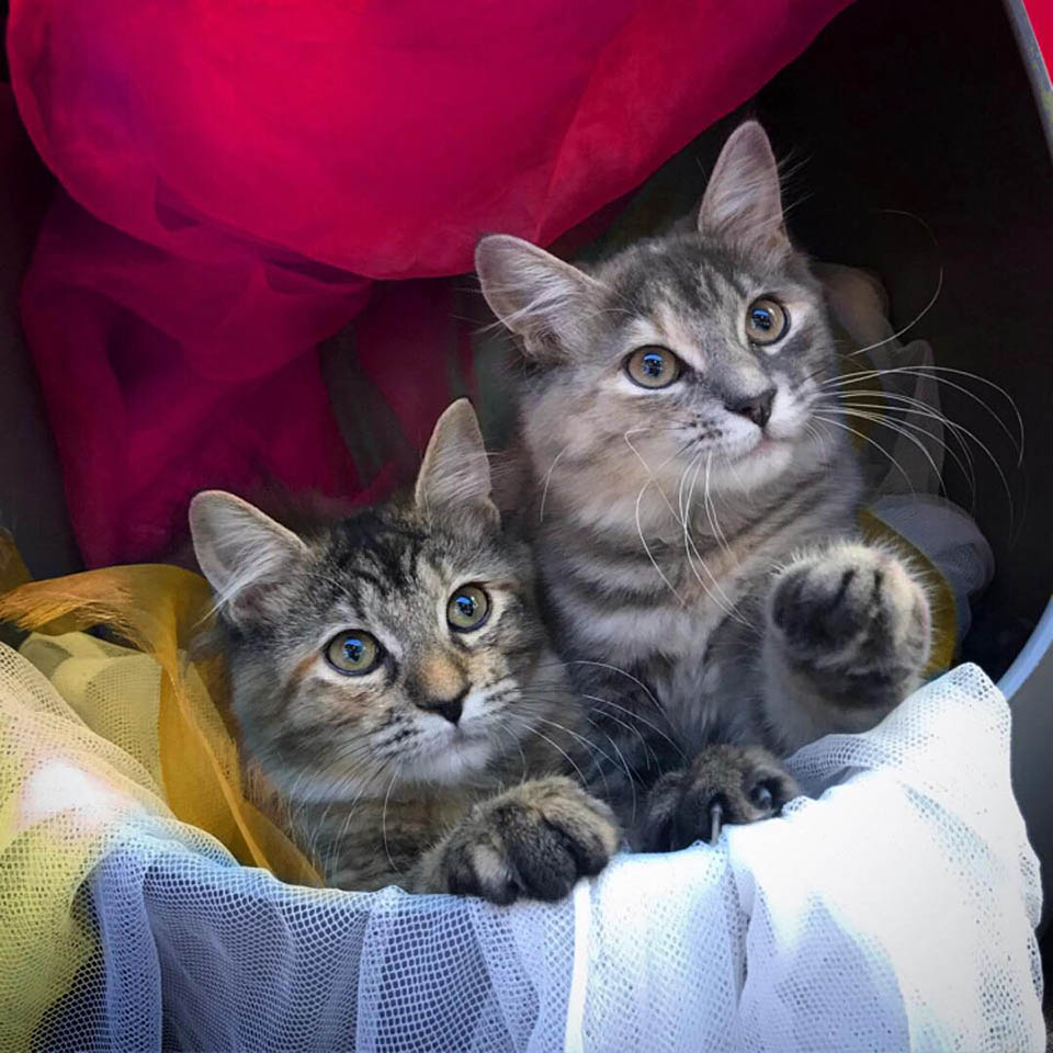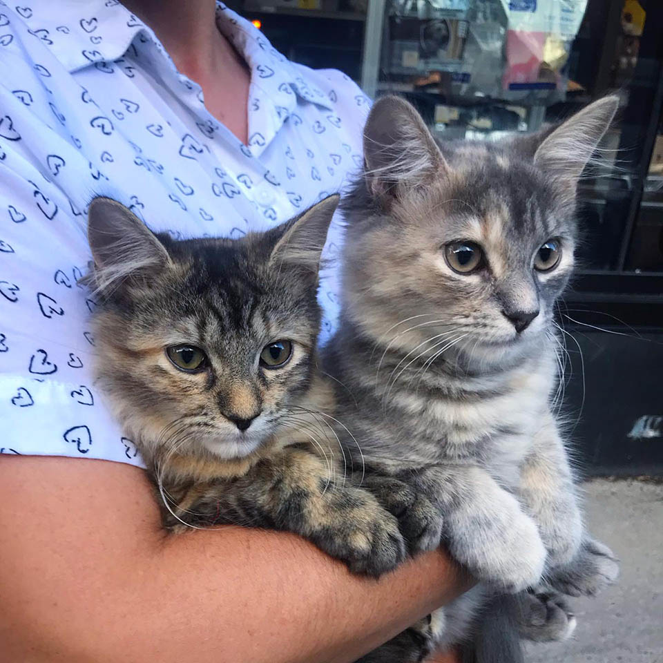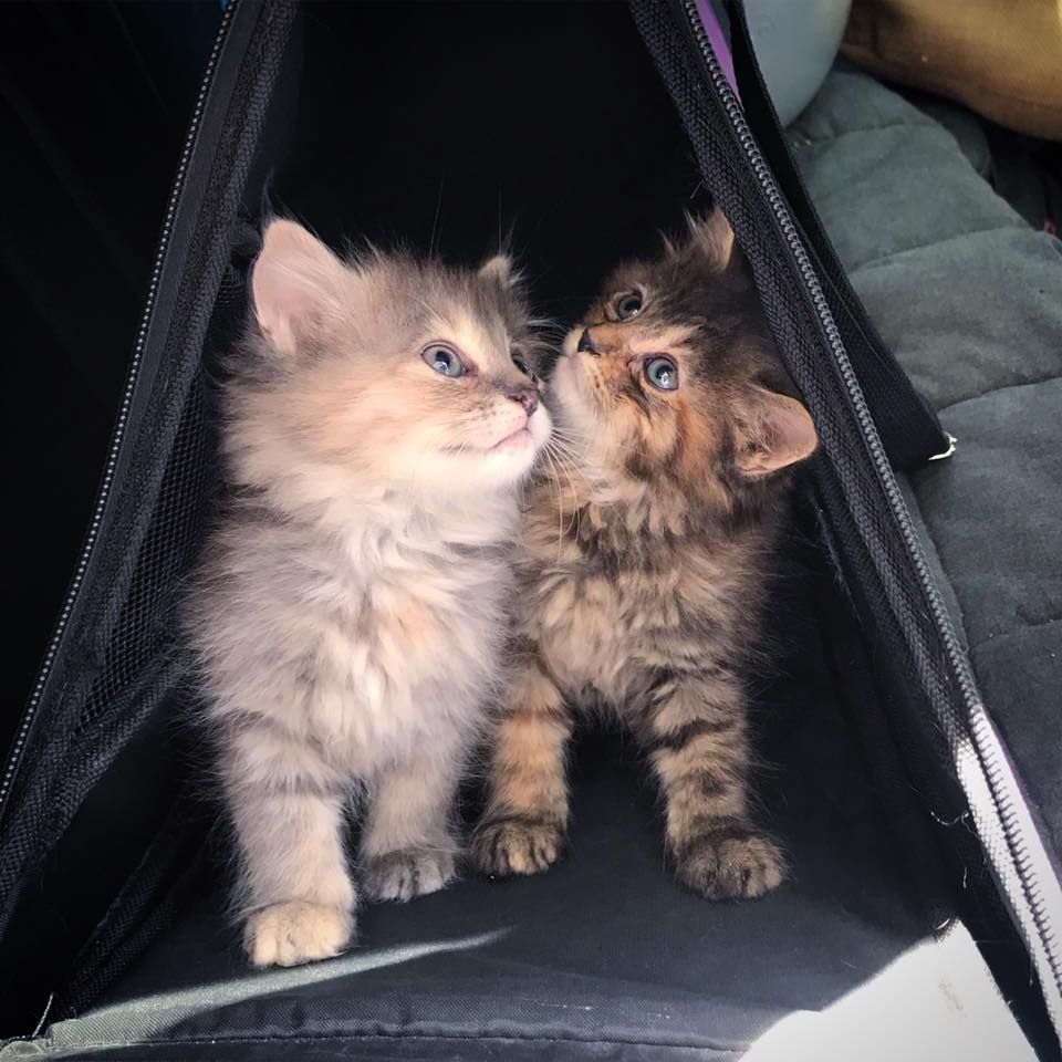 «There were three kittens at first, but one of them unfortunately died. The family that had the litter was unable to care for the surviving two sisters.