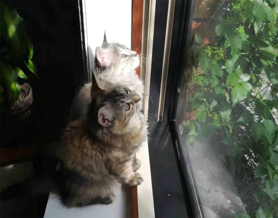 «They’re naughty, daring, and inquisitive about everything. Closed doors irritate them, and they will climb on whatever they can get their paws on. Zelda is a little more self-sufficient than Sapphira, and Sapphira enjoys conversing with her adoptive family.