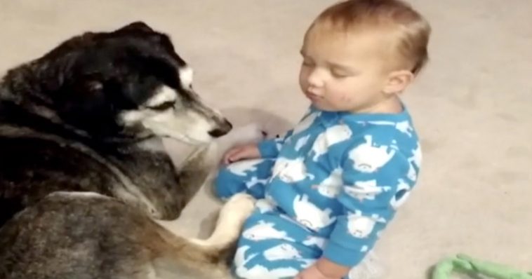 He plants some kisses to try and wake the boy, but when that doesn’t work, the good dog gets in position to let the kid crash. How adorable!