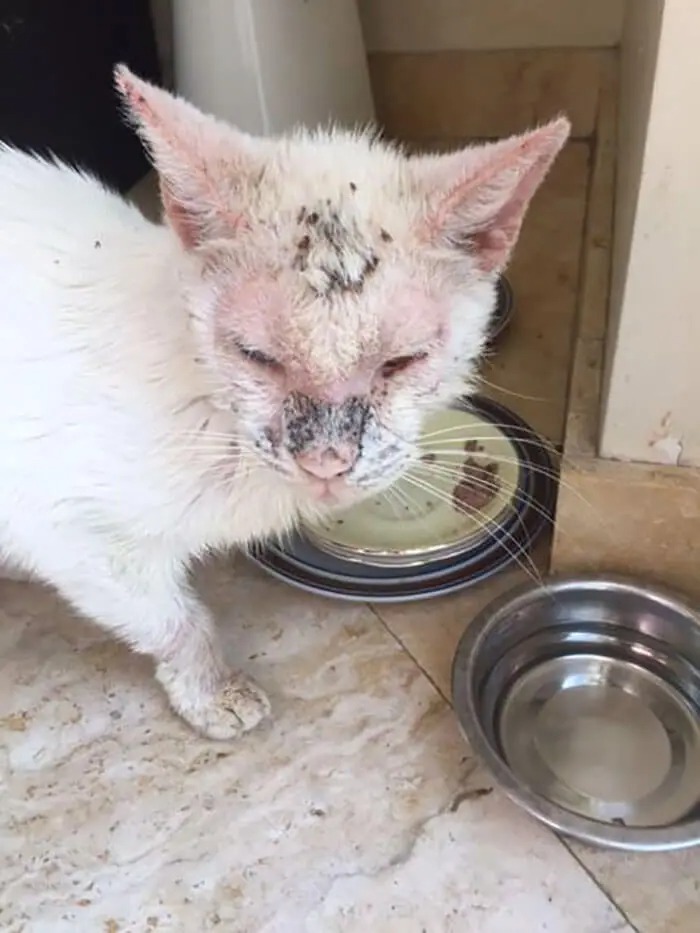 Cotton the cat was one of the stray cats in Florida, he was alone, starving, severely ill, and nearly kicked the bucket. He was in drastic conditions: his head was being eaten alive by mites, his eyes were scabbed over with mange so badly that he couldn’t open them. Cotton was struggling to get by until his lifesaver arrived and turned his life around. Carmen Weinberg, the founder of Animal Friends Project Inc., was heartsore when she received him, and immediately took him under her care. Ever since then, Cotton had been given a second chance at life and fit in with the indoor life.