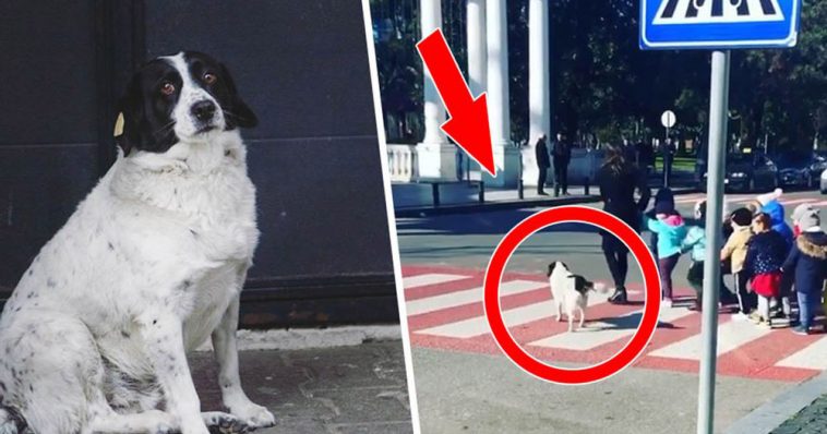 Each day, a group of kindergarten children arrive at the crosswalk and every day, Sausage is there for them. He strolls over to any cars in the area and barks at them as if to say “stop and wait for the kids to cross.”