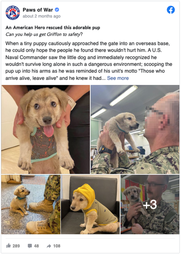 The post added, “As the Commander took charge of caring for Griffon, he built a great attachment with the pup who follows him everywhere. Little Griffon was adopted by a family. Every everyone who meets the dog finds him to be a joy.