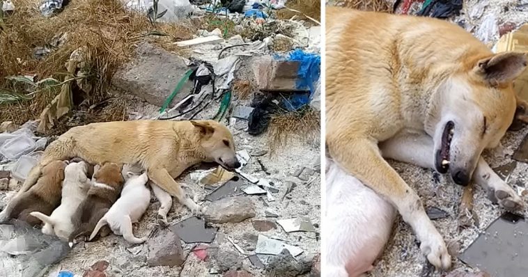 Despite her own pain and hardships, she refused to give up on her remaining four puppies. She relentlessly scoured for food, doing everything within her power to ensure their survival.