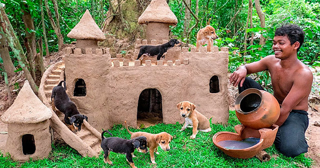 One of his projects was making a mud dog castle with a moat for four puppies that he rescued from a cave near his home. He videoed a tutorial on how he built it and posted it to his channel, which has since garnered nearly 30 million views.