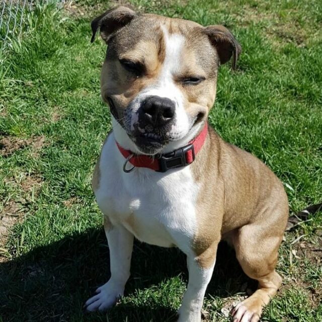 A happy dog named Hansel was rescued from a dog fighting ring in the Canadian community of Tilbury. Hansel was ready to be put down along with more than 30 other canines in the ring due to Ontario’s ban on pit bulls.