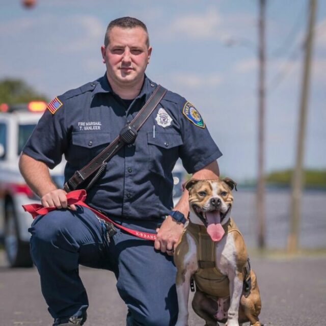 Over time, the dog has developed a close friendship with his handler, firefighter Tyler Van Leer, in addition to helping the fire service save lives.