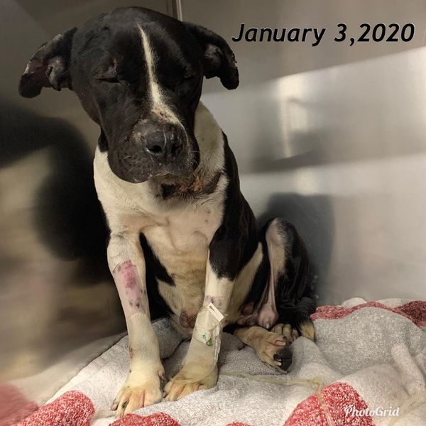 She’s in pretty terrible state with some open wounds. Arriving at the vet, they all believed her to be pregnant but after looking at the x-rays, she was not.