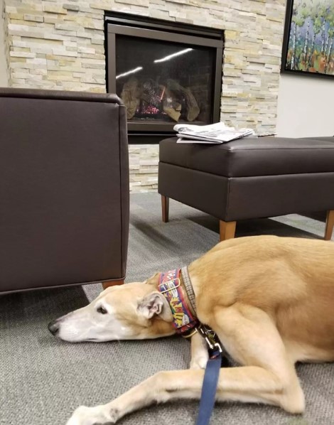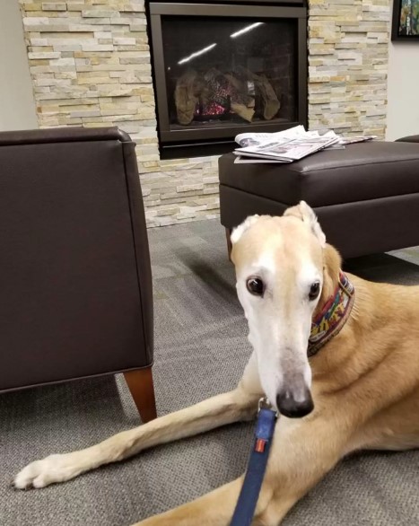 Sting is a kind therapy dog who enjoys nothing more than providing a listening ear.