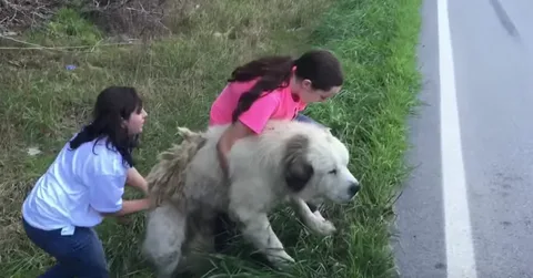 While driving along the roadway, the Ringstaff family’s attention was caught by the sight of a large, forlorn dog lying motionless by the side. Concerned and compassionate, they made a swift decision to reverse their vehicle and approach the canine, fearing that it might have fallen victim to a devastating collision with a passing car.