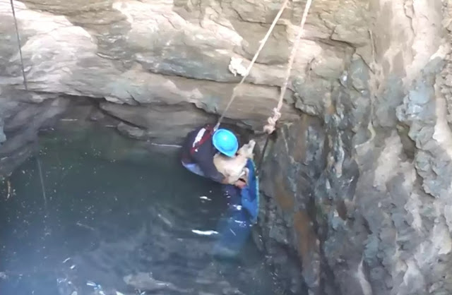 As one of the rescuers descended into the well, the dog continued her aquatic dance, eagerly welcoming him and allowing him to place her in a net. With great care, the rescuers above began the ascent, gradually lifting the net to safety until she was finally cradled securely in their arms.