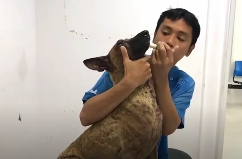 In a turn of fate, a kind-hearted stranger came across him. Recognizing the severity of Thap’s condition, the stranger didn’t turn a blind eye. Instead, they stepped in, delivering Thap into the caring hands of Tan-diau Pet Hospital, a decision that would mark the beginning of Thap’s long journey from pain to healing.
