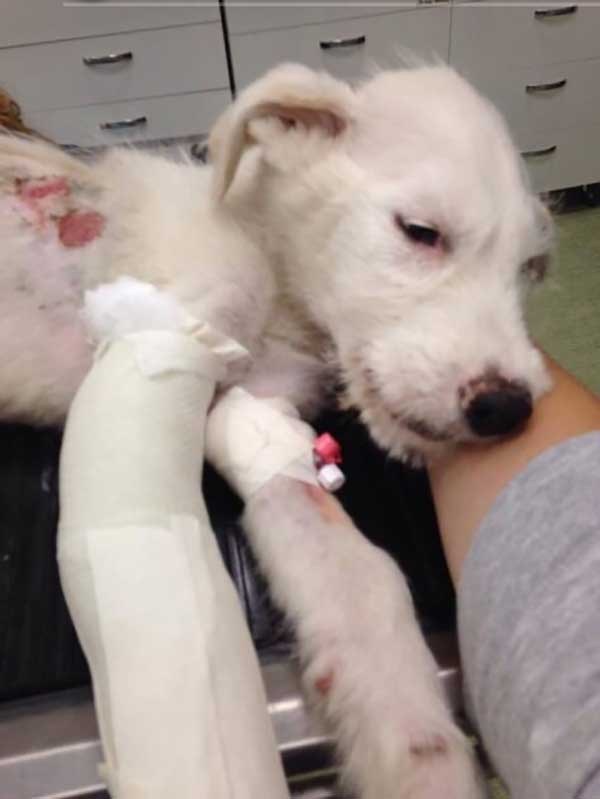 Her leg was fractured, she was dehydrated, as well as she was starνing. She was left for dead.