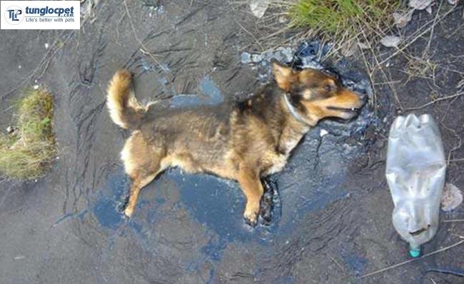 Many witnesses burst into tears when they saw the dog screaming in pain. According to some people present, the small dog may be an abandoned stray dog that accidentally got its paw in this asphalt puddle and couldn’t move. No one knows how long this dog has been stuck here, but the time it was discovered its cry was very weak and tired.