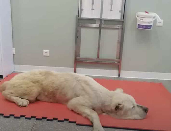 His rescuers covered him with a blanket and the next day took him to the vet. The dog was in bad shape, but it was even worse than they feared. He was an old guy and had a back injury that was preventing him from walking.