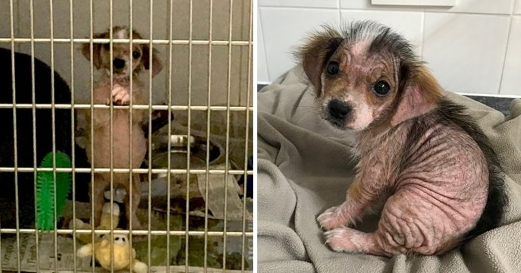 Terra lost most of her fur owing to suffering from mange . Scabies is a chronic and painful skin disease caused by mites. Animals with this illness are frequently hairless and their skin is covered in sores.