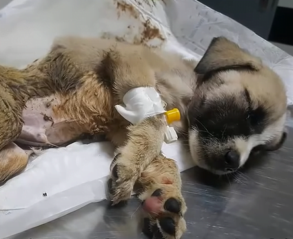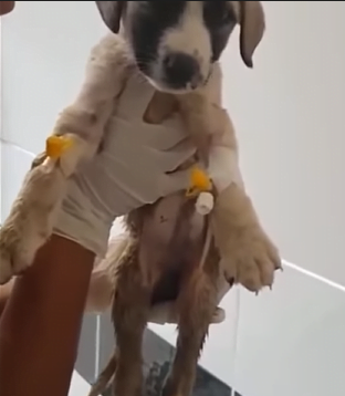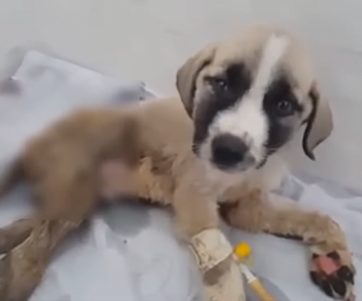 THis puppy was once abandoned when his hind legs were completely paralyzed.