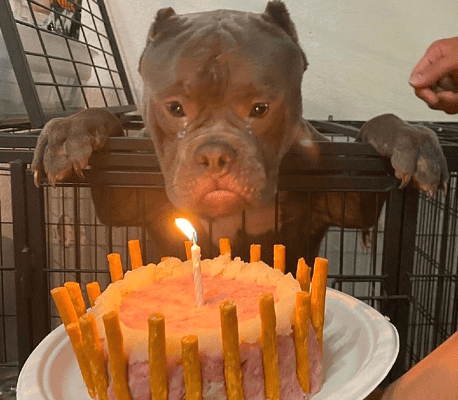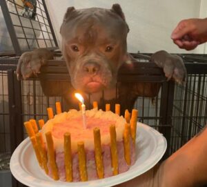 He couldn’t believe his wonderful fortune. He’d never had a birthday party before, and he was overjoyed to see all the treats and gifts laid out for him. He rushed about the shelter wagging his tail and excitedly barking as the rescuers looked on with tears in their eyes.