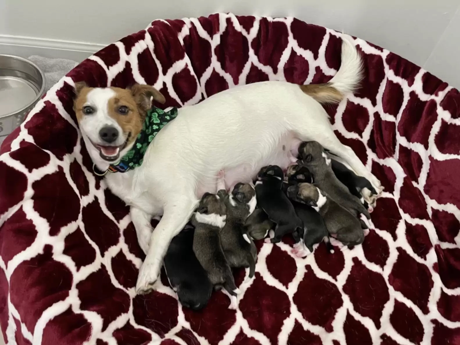 However, the dog was taken back to the shelter to give birth as she needed C-section surgery. In a 20- minutes surgery, the dog gave birth to 9 pups, which was very surprising to the veterinarians as small dogs like Momma Malone usually give birth to about 2-5 pups.