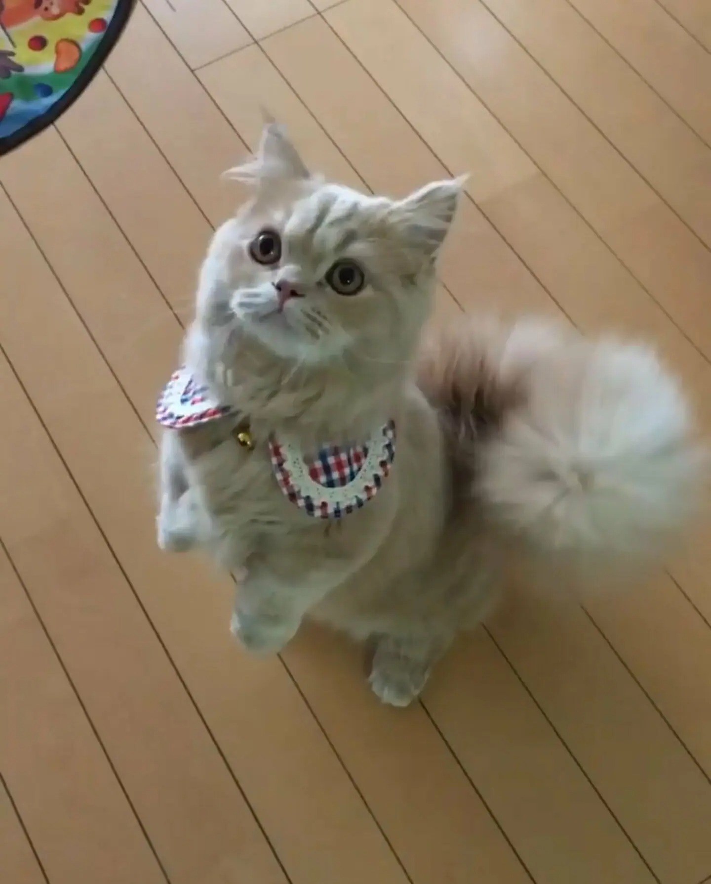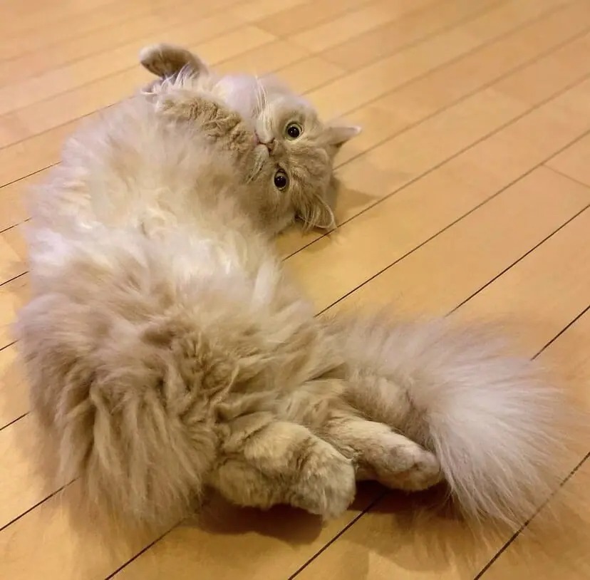 Bell is now 4 years old. Her owner shared that she is a Minuet, which is a mixed breed of Persians and Munchkins. That is why she has the short legs of a Munchkin and the beauty of a Persian. I guess you can call she is the best of both worlds. Minuet babies are known for their round-everything, from their faces to their beautiful eyes, the round body shape with such great fur coats.