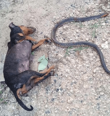 A courageous pet dog died after battling off a venomous snake in a desperate effort to rescue its owner’s baby child from a lethal bite.
