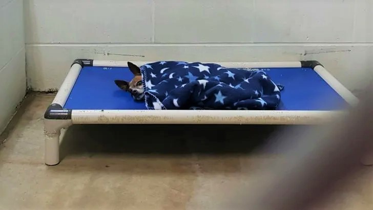 The caretakers at the Humane Society of Branch Count, MI, posted photos of a snuggly tucked-in Scooter, hoping that someone would be quick to recognize how good a boy he was.