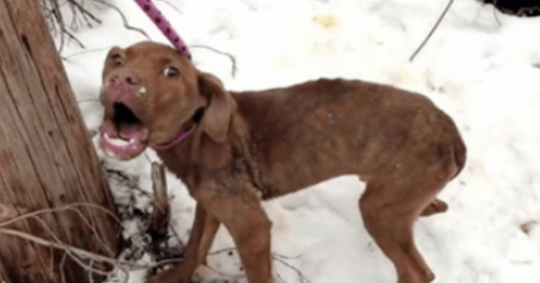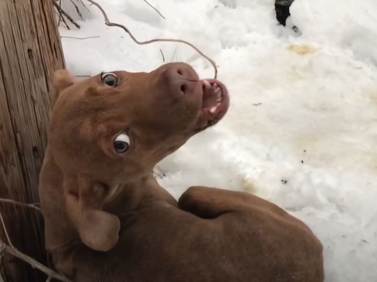 Donna, from Stray Rescue of St. Louis, was out on the heavily-snowed roads when she heard a gut-wrenching cry for help from an abandoned puppy. She followed the sound to find a wounded puppy, in a pile of snow, shivering and screaming in fear.