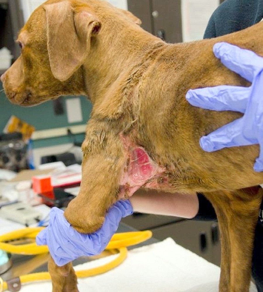Donna rushed him to the trauma center, where he received treatment for his condition. The vets figured out that the infected wound was the result of an embedded harness, which his owner must have cruelly put on him.