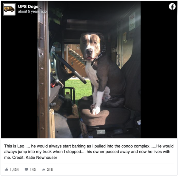 Katie shared the good news on the UPS Dogs Facebook page and her post received thousands of comments celebrating Leo’s new home.